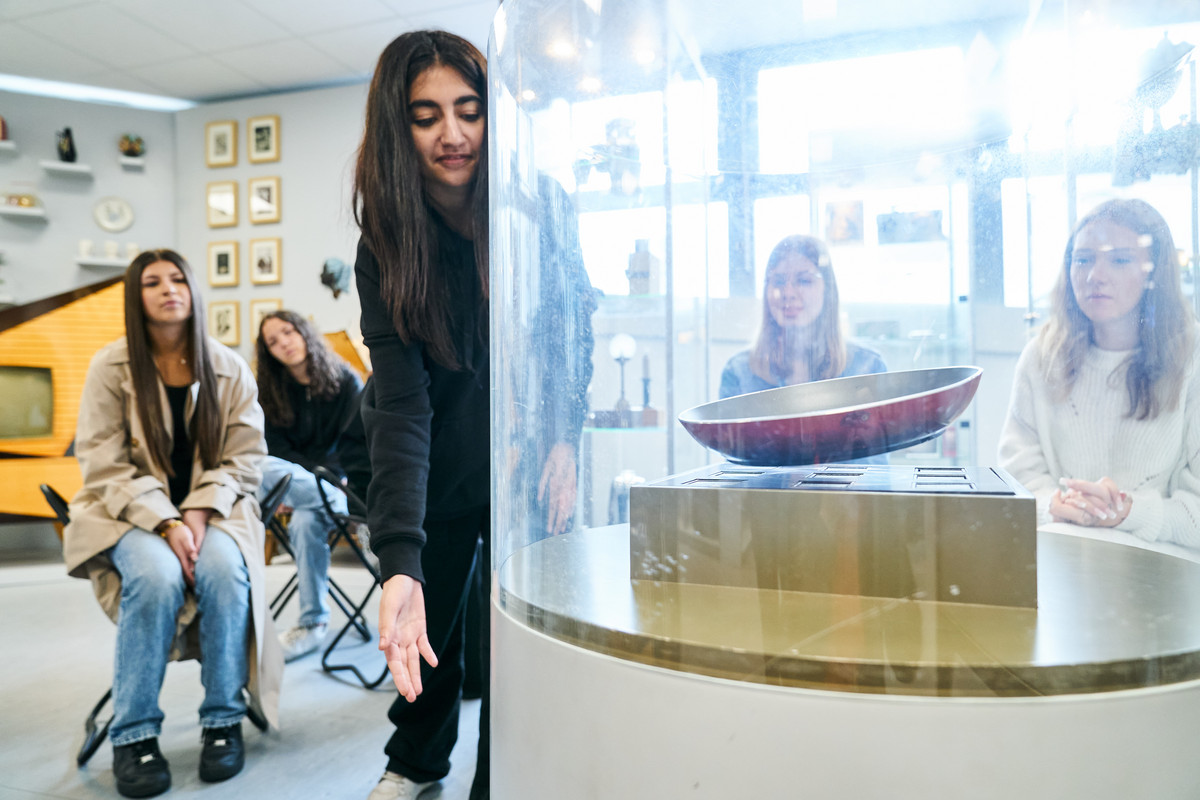 Bei Besuchen in Unternehmen erlebten 90 Teilnehmende aus Mittel- und Oberstufe saubere Technologien in Entwicklung und Anwendung, erführen mehr über die konkrete Umsetzung von Nachhaltigkeitszielen und kamen mit Mitarbeitenden ins Gespräch, wie zum Beispiel hier: