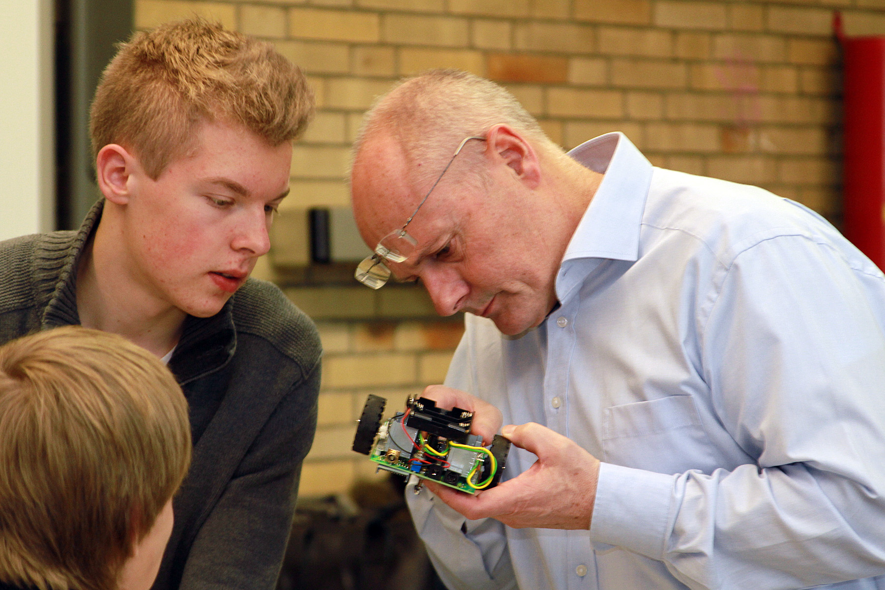 Ein Modul ist eine Ansammlung mehrerer Chips auf einer Platine, wie Jonas fachmännisch hinzufügt. Zehn dieser Module hatte NXP an die Schule geliefert. Aber die Programmierung, die bei Rolf Gebauer kinderleicht aussah, erwies sich im Seminar als harte Nuss: „Ohne Anleitung kamen wir da im Unterricht nicht weiter“, resümiert Informatiklehrer Gerd Püttjer. „Das fing schon mit elementaren Schwierigkeiten an.“ Das Modul musste im ersten Schritt „geflasht“ werden, das heißt, eine grundlegende Software darauf gespielt werden. „Es ist ein stetiges Experimentieren und man muss dafür tiefer in die Materie einsteigen“, so Püttjer.