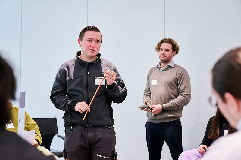 Zumal Auslandszulagen das Ausbildungsgehalt noch mal deutlich aufbessern: Geld ist für die Jugendlichen ein wichtiges Thema. Insbesondere, solange sie weder die Firmen kennen noch sich unter den Inhalten und Abläufen einer dualen Ausbildung etwas vorstellen können. Trimet beispielsweise, ein familiengeführtes Unternehmen und Europas größter Aluminiumproduzent. Aluminium wird auch in den Rotorblättern der Windkraftanlagen verbaut, die beiden Auszubildenden von Trimet haben als „Sicherheitsfachkräfte“ am Vormittag beim Bau unterstützt. Shourya: „Ich fand das richtig gut, wie wir zusammen den Windpark aufgebaut haben“, sagt der Max-Schmeling-Schüler. Und geht sogar mit einer Jobidee nach Hause.