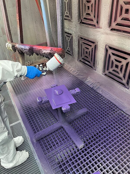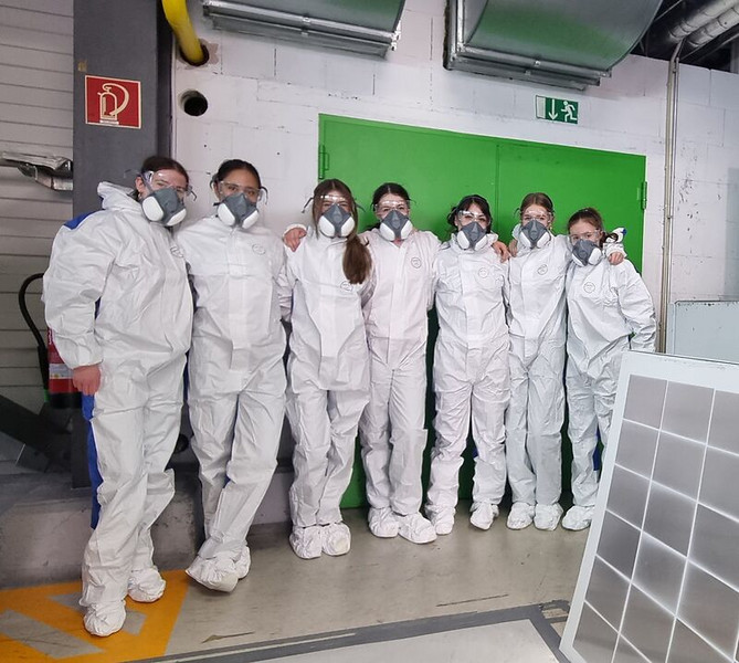 Physik, Chemie, Praxis: Im zweiten Teil der Veranstaltung dürfen die Mädchen selbst Hand anlegen. Neel, Verfahrungsmechaniker für Beschichtungstechnik im dritten Lehrjahr führt die Gruppe durch die Anwendungstechnische Abteilung, ATA genannt. Hier werden geänderte Rezepturen geprüft, bevor diese im großen Maßstab produziert werden. An der letzten Station ziehen die Mädchen Schutzanzüge, Maske und Handschuhe an und lassen sich von Neel die Handhabung der Lackierpistole erklären: „Wenn du langsamer ziehst, würde ich die Materialschraube weiter zudrehen, damit da nicht zu viel Lack auf das Substrat kommt“, sagt Neel. Erst kommt viel Luft, dann hat Latifah den Schleifpunkt fest im Griff – und zieht von links nach rechts über den Rand des Metallstücks hinaus, wie es Neel gezeigt hat. Seife, Zahnpasta, Hautcreme – Latifahs Tag hat mit Chemie begonnen und wird damit enden. Nun bringt sie noch eine glänzend lilafarbene Metallplatte nach Hause. Ihr Fazit: „Sehr cool, man darf nur nicht zu schnell aufhören.“ Das gilt fürs Lackieren, aber auch für Suche nach einem passenden Beruf.