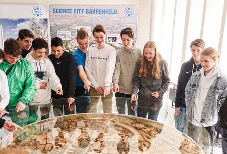 Aber bisher ist es frisch auf dem Campus und das Grün krabbelt langsam: Zwischen der Zukunftsvision im Netz und der begrünten Forschungshalle vor Ort klafft noch eine Lücke aus Kiwi, Clematis und jeder Menge Efeu. Letzterer wollte lieber in die Breite als in die Höhe wachsen, wie Schulz erzählt: „Der Efeu bildet die Kletterfüßchen nicht so richtig aus, so dass wir ihn erst mal festgebunden haben.“ Beine gemacht hat sie ihren jungen Gästen aber schon vorab mit einer interaktiven Präsentation der Stabstelle für Nachhaltigkeit. Dass der Forschungscampus inzwischen ganz auf Ökostrom setzt, ist die gute Nachricht. Und dabei so viel Strom benötigt wie 50.000 Haushalte sei eine Besonderheit supraleitender Technologien, wie Avid schon im Vorwege herausgefunden hat. „Gefühlt haben wir uns mehr auf den Termin heute vorbereitet als auf die Deutscharbeit, die wir davor geschrieben haben“, verrät der Zehntklässler, der die Gyula Trebitsch Schule besucht.