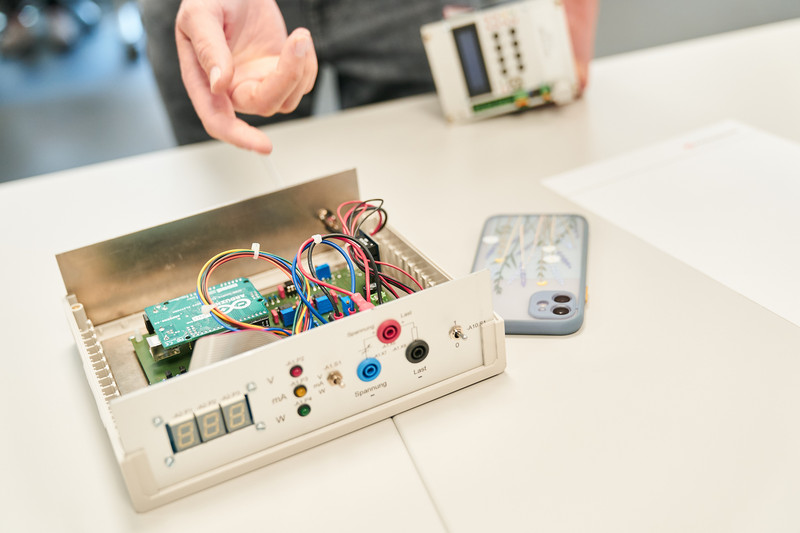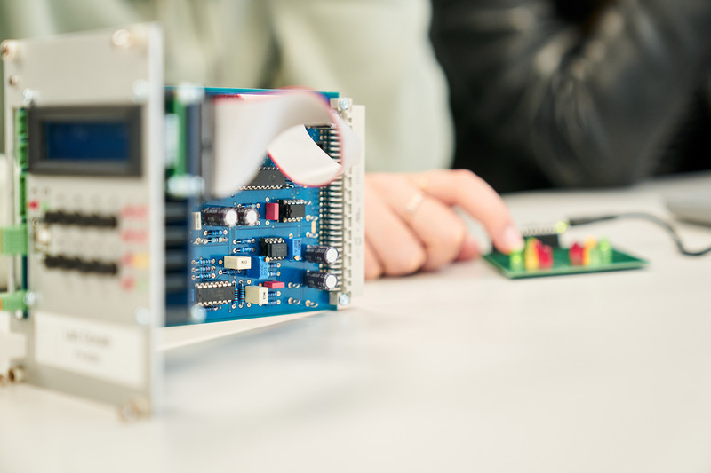 Marco ist so ein EGSler, wollte aber Technik und Menschen verbinden und hat dafür noch einen Meister inklusive Ausbildereignungsschein drangehängt. Seit fünf Jahren ist er für die Ausbildung der EISler und EGSler zuständig. „Die Berufe sind verwandt, es geht um ganz viel Technik, die man als Kunde nicht so wahrnimmt“, sagt Marco und nennt Videoüberwachung oder Brandmeldeanlagen. Das heißt, Paula ist viel in Hamburg in Technikräumen und Bahnhöfen unterwegs. Stromlaufpläne entwickeln, Platinen löten, programmieren, all das kannte und konnte sie vor ihrer Ausbildung nicht, betont sie. „Die Motivation muss stimmen“, so Marco. Bei Jessica stimmt sie: „Ich fand das richtig gut und kann es mir als Beruf vorstellen – aber ich kann mir vieles vorstellen.“ Die Qual der Wahl nach einem Jahr mint:dual: Die Zwölftklässlerin will alles mitnehmen.