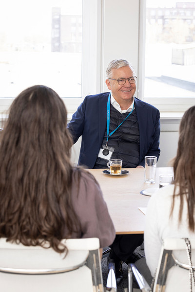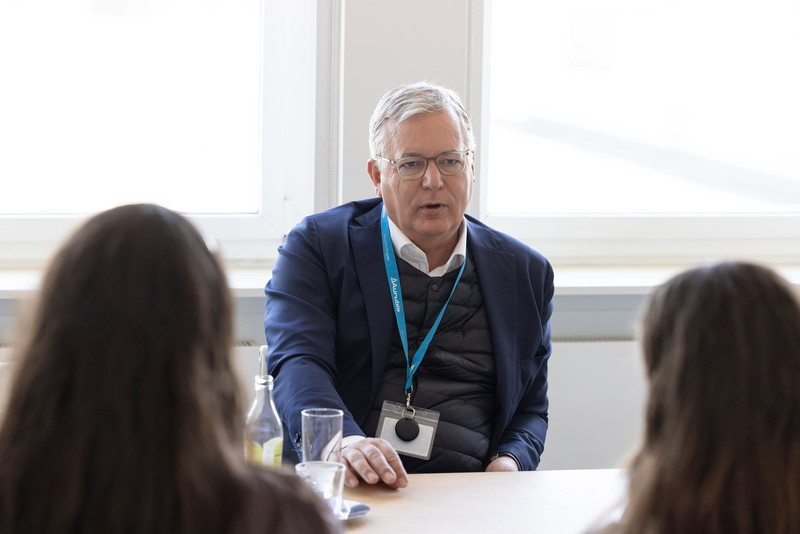 Das ist eine gute Frage, lobt Toralf Haag und zählt auf: Disziplin – „das ist das Wichtigste“ – operatives und zugleich strategisches Denken, Internationalität, aber auch Resilienz. „Es hört sich immer toll an, CEO zu sein, aber man muss auch sehr viele Krisen und Probleme aushalten – und dennoch gut schlafen.“ Schließlich sei sein Arbeitstag von 8.00 bis 22.00 Uhr voll durchgetaktet und Entschlossenheit gefragt, gerade in Krisenzeiten wie der Pandemie oder Russlands Krieg: „Da muss man wie Helmut Kohl nach der Wende ganz schnell Entscheidungen treffen, das ist sehr anspruchsvoll.“ Als der „Kanzler der Wende“ regierte, waren die drei Schülerinnen noch nicht geboren, aber dass die schwierigsten Momente im Leben stets die sind, die man zum ersten Mal durchmacht – das können sie gut nachvollziehen. Zum ersten Mal von zu Hause weggehen, eine Ausbildung wählen, einen CEO befragen, beispielsweise.